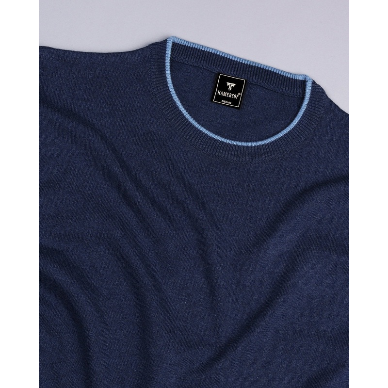 Vibrant NavyBlue Melange Knitted Cotton Full Sleeves T-Shirt