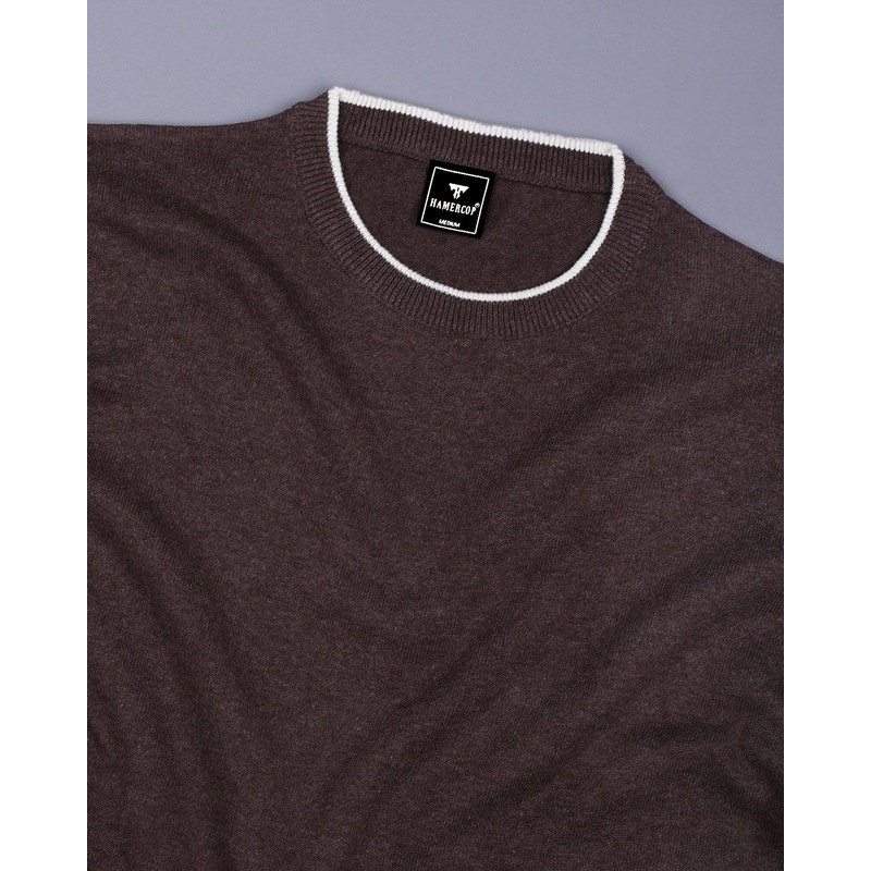Vibrant Chocolate Brown Melange Knitted Cotton Full Sleeves T-Shirt