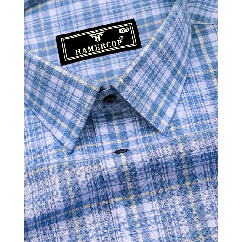 Velis Blue With White Check Linen Cotton Formal Shirt