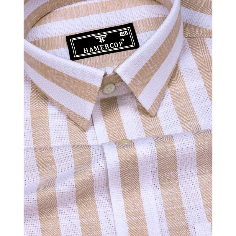 Vimcy Cream With White Dobby Stripe Cotton Shirt