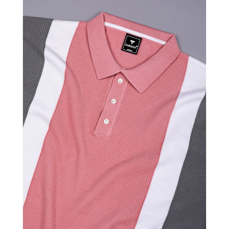Vision Peach With Gray Knitted Cotton Designer Polo T-Shirt