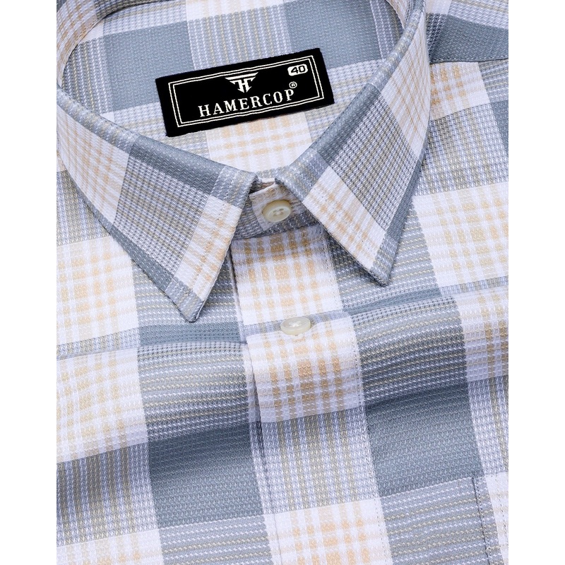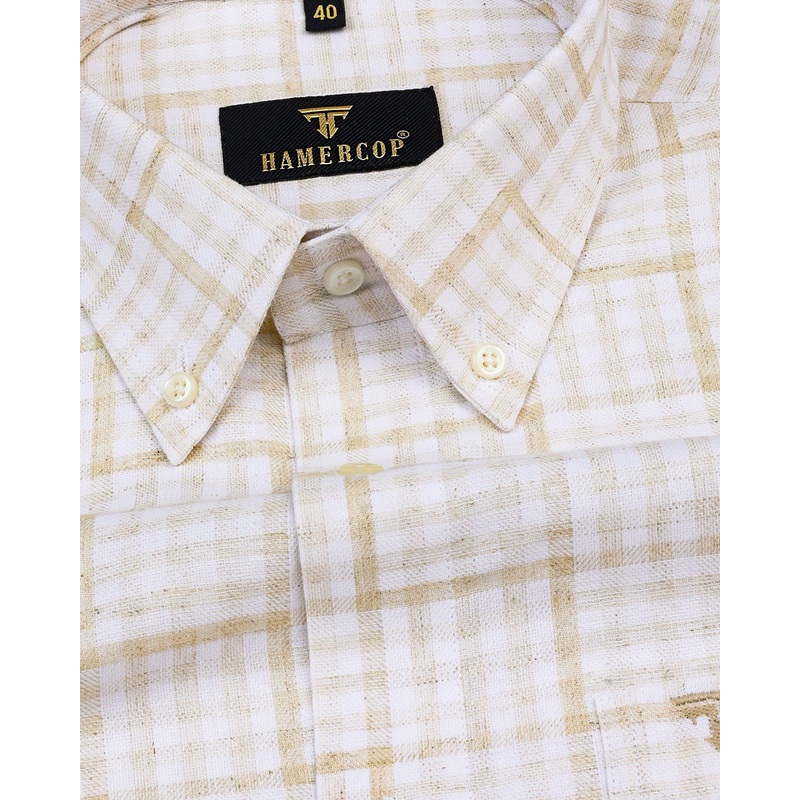 Waffle Cream With White Dobby Twill Check Cotton Shirt