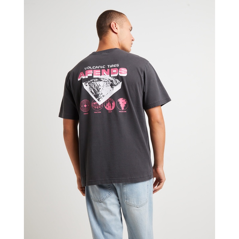 Volcanic Times Recycled Retro Fit T-Shirt in Stone Black BLK