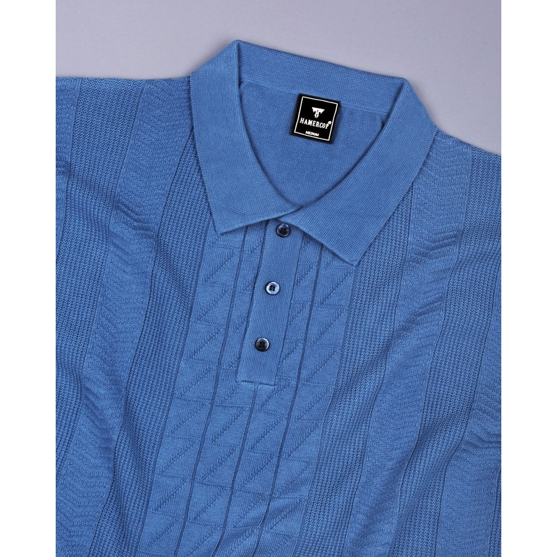 Wonder Steel Blue Knitted Cotton Polo T-Shirt