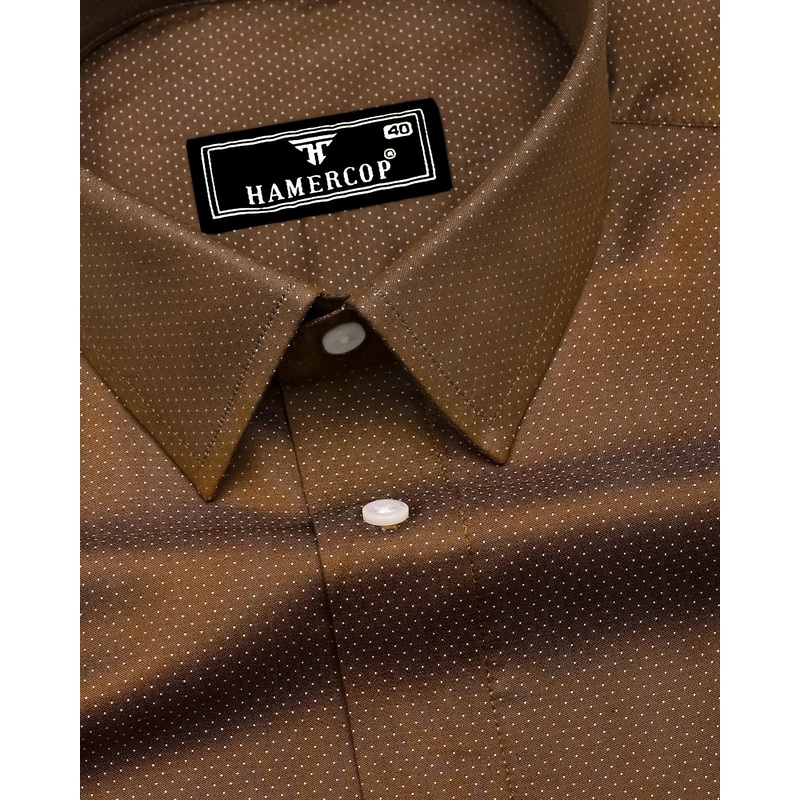 Wood Brown With White Jacquard Textured Cotton Shirt