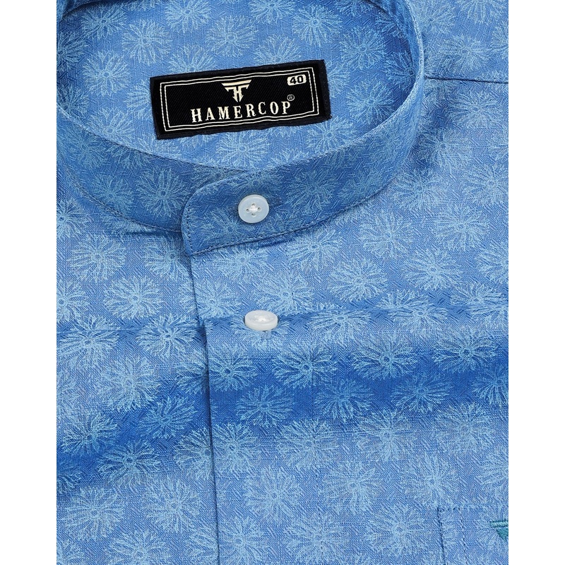 Blue Passion Flower Printed Dobby Formal Cotton Shirt