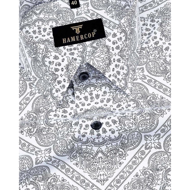 Black Paisley Printed With White Poplin Cotton Shirt