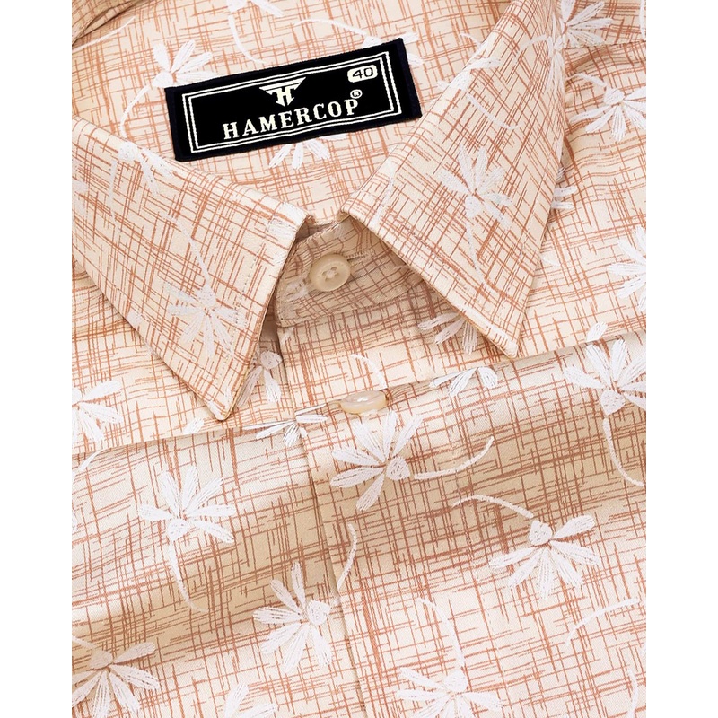 Bisque Cream With White Printed Satin Cotton Shirt
