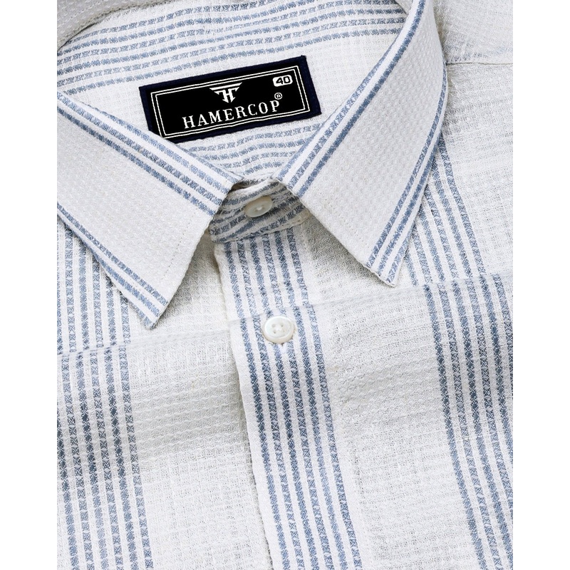 Binary White With Gray Waffle Stripe Dobby Cotton Shirt