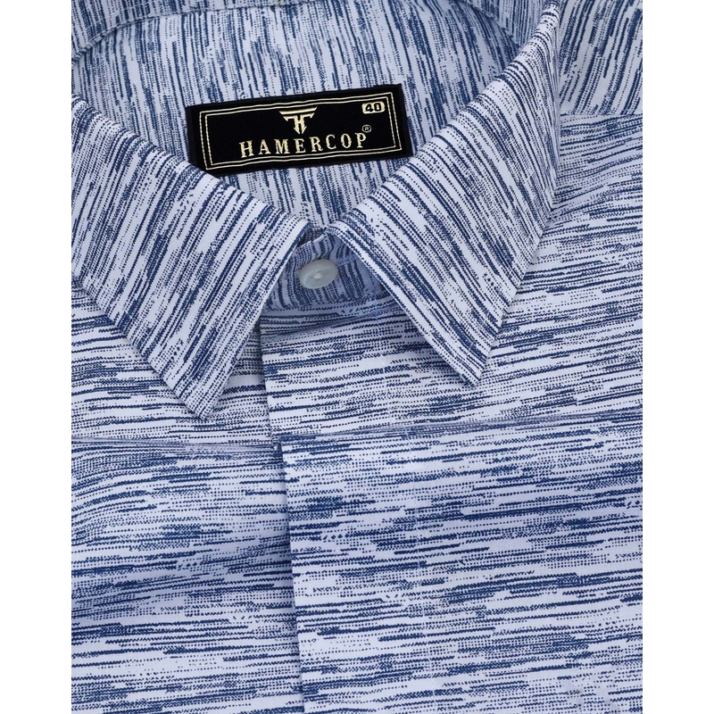 Blue Sprinkle With White Printed Formal Cotton Shirt