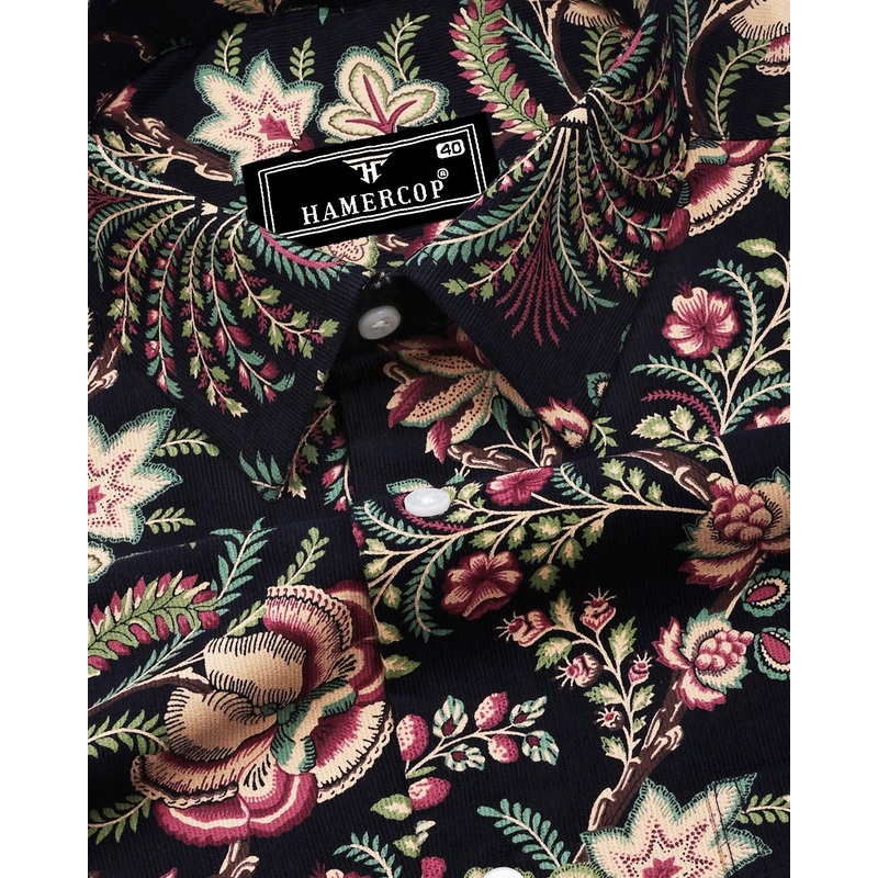 Black Flower Velly Printed Corduroy Cotton Shirt