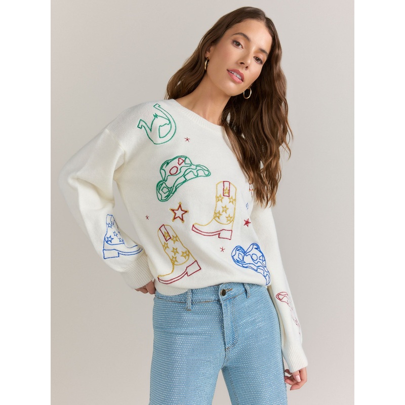 Blue B Long Sleeve Western Motif Pullover – Brands We Love NATURAL – OFF WHITE