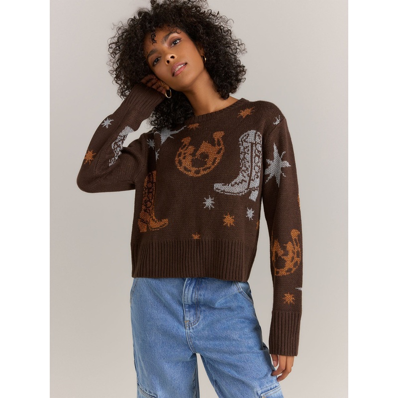 Blue B Western Metallic Cowboy Pullover – Brands We Love BROWN – BROWN