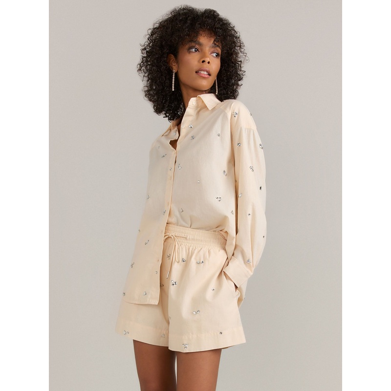 Blue B Embellished Gemstone Poplin Button Down And Shorts Set – Brands We Love NATURAL – BEIGE