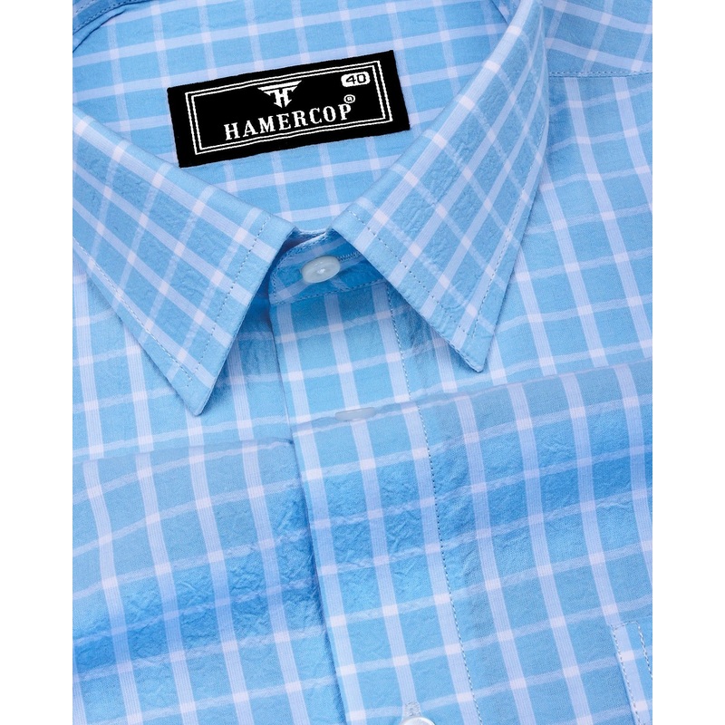 Yucca Blue With White Check Seersucker Cotton Shirt