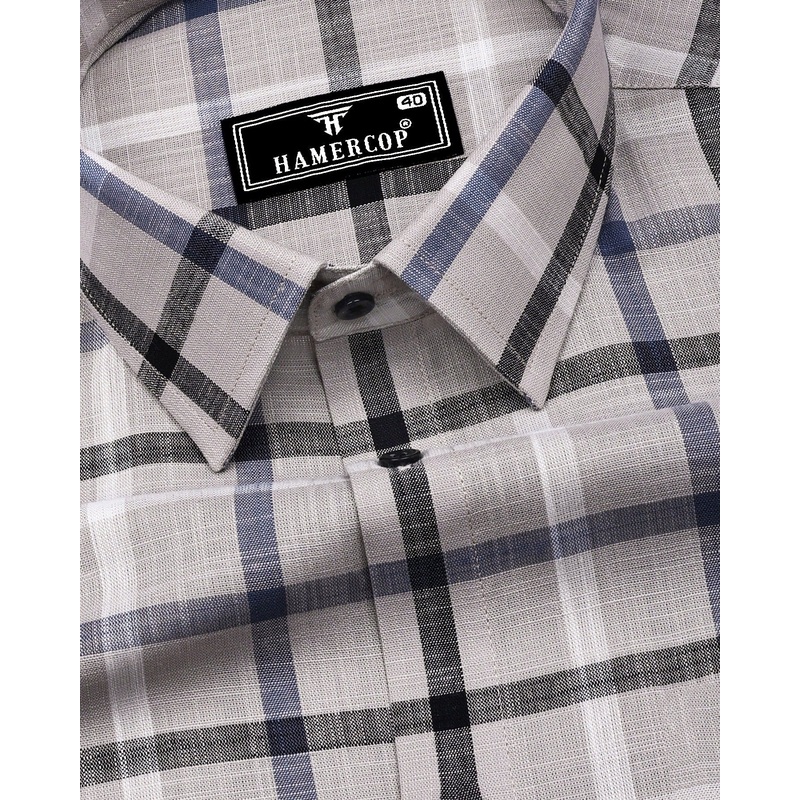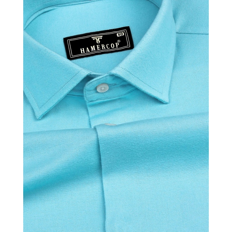 Aqua Blue Plaid Flannel Cotton Solid Formal Shirt