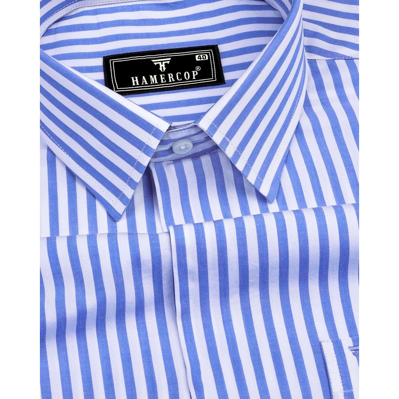 Arctic Blue With White Stripe Formal Cotton Shirt