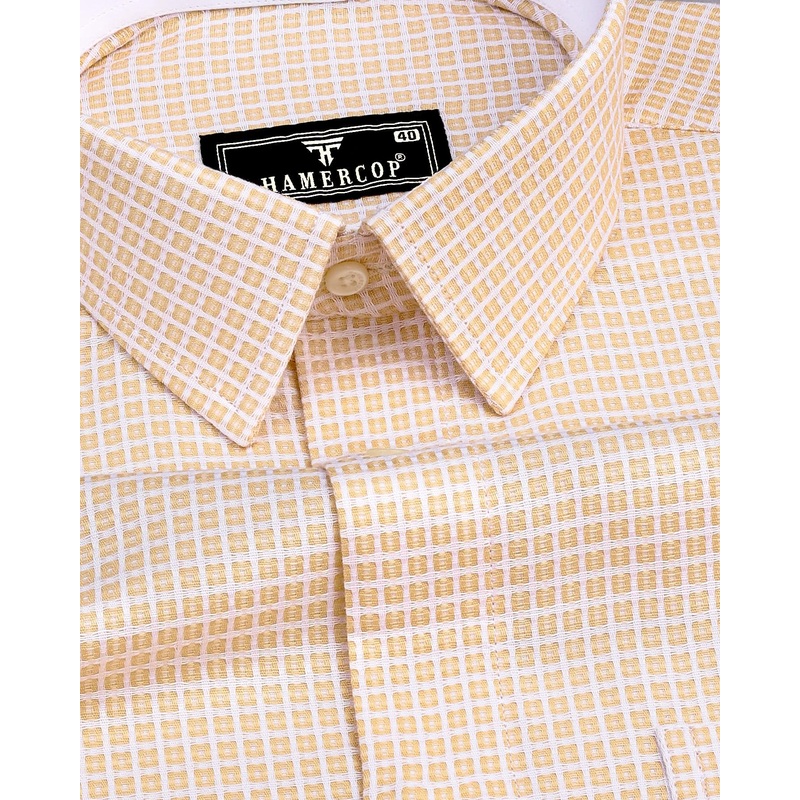 Aytos Cream With White Dobby Check Designer Cotton Shirt