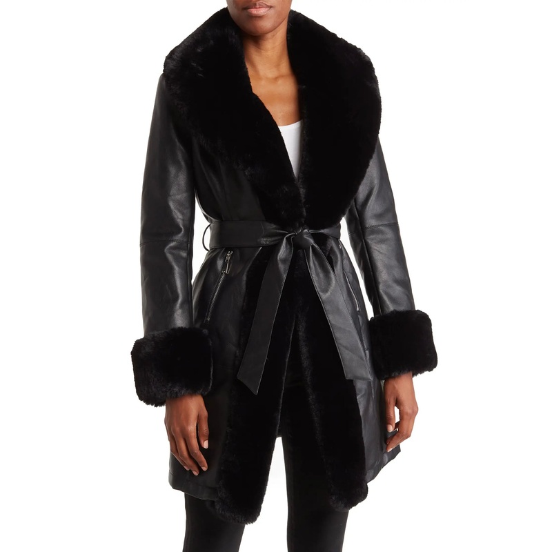 Azela Wang Pleather Fur Trim Trench Coat – Brands We Love BLACK – BLACK