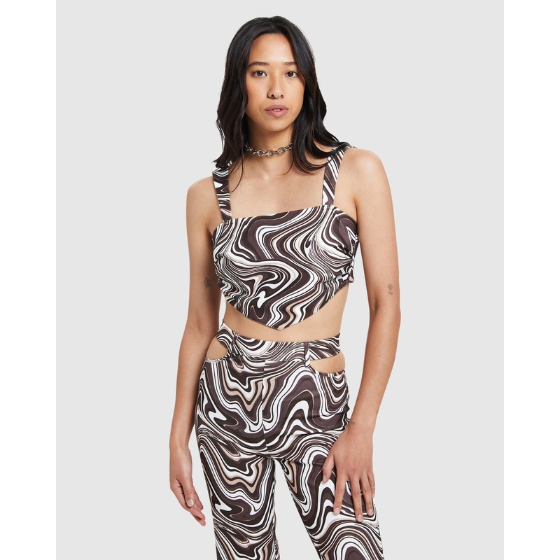 Tammy Swirl Prt Tie Back Bodice BRN