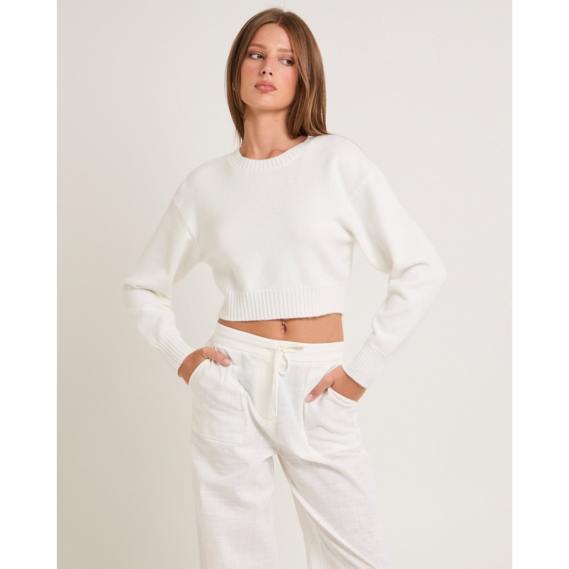 Tasmine Cropped Knit Sweater WHT