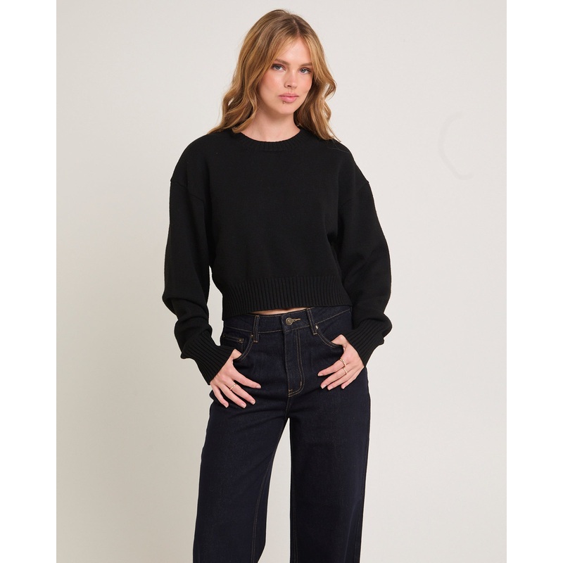 Tasmine Cropped Knit Sweater BLK