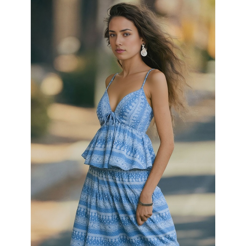 Tie Chambray Embroidered Peplum Top BLUE – BLUE