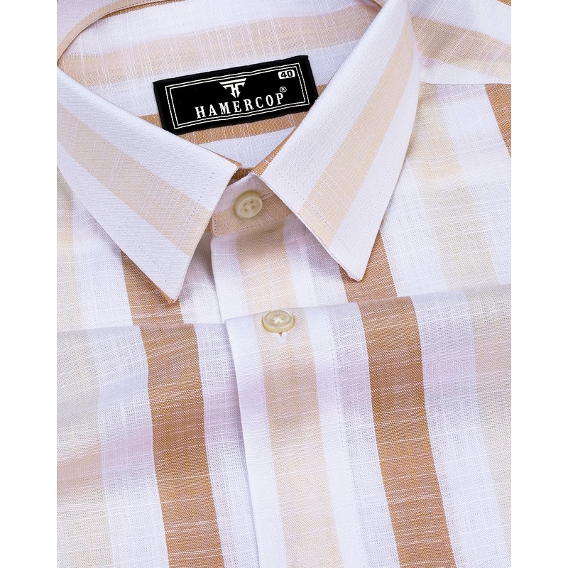 Thelon Cream With White Broad Stripe Linen Cotton Shirt