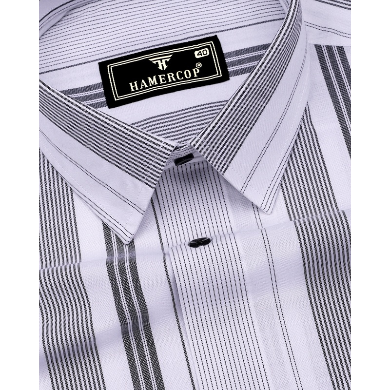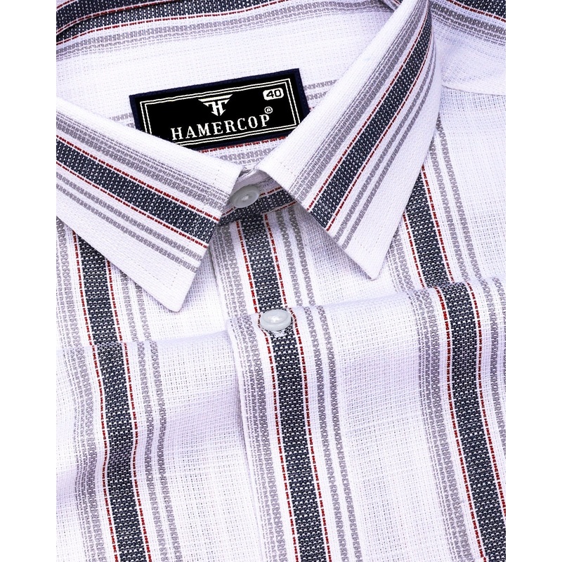 Tonic Gray With White Dobby Stripe Slub Cotton Shirt