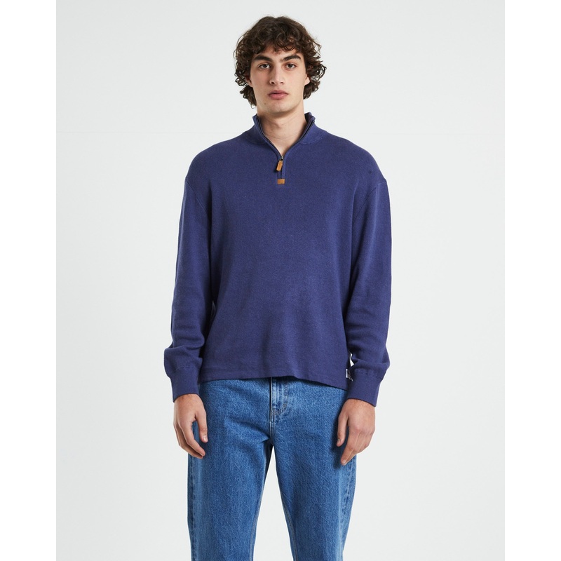 Trade Hemp Quater Zip Fleece Jumper in Navy NVY