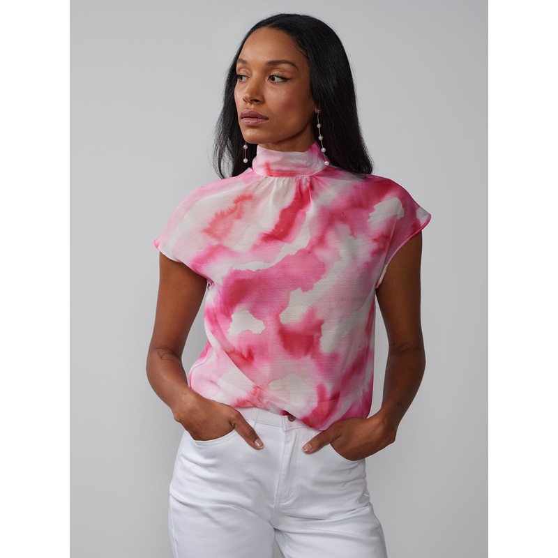 Tie-Dye Back Tie Organza Blouse PINK – PINK