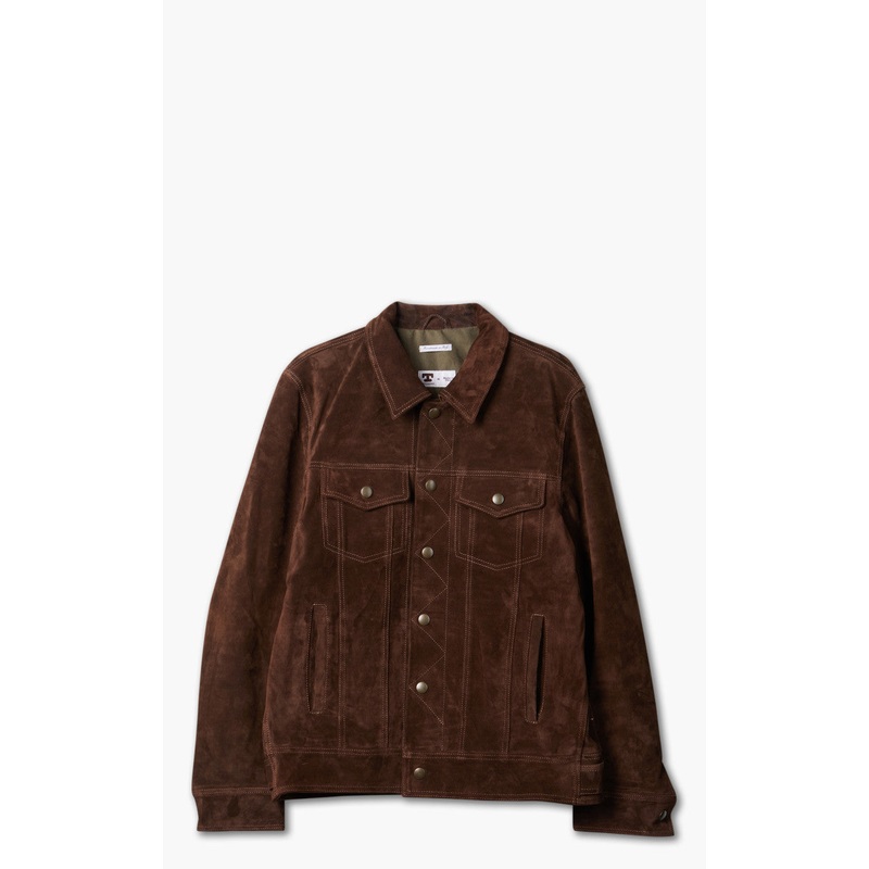 Tellason Suede Trucker Jacket Calf Split Silky Dark Brown