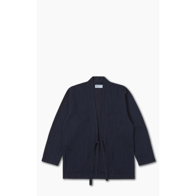 Universal Works Tie Front Jacket Herringbone Denim Indigo