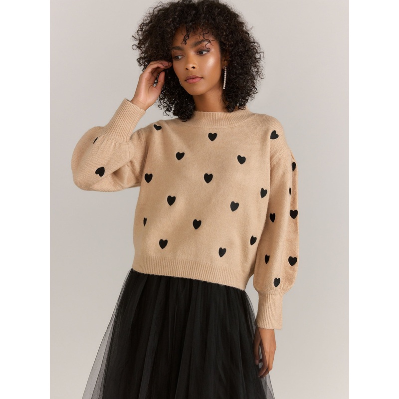 Sugarlips Long Puff Sleeve Heart Pullover – Brands We Love NATURAL – CAMEL