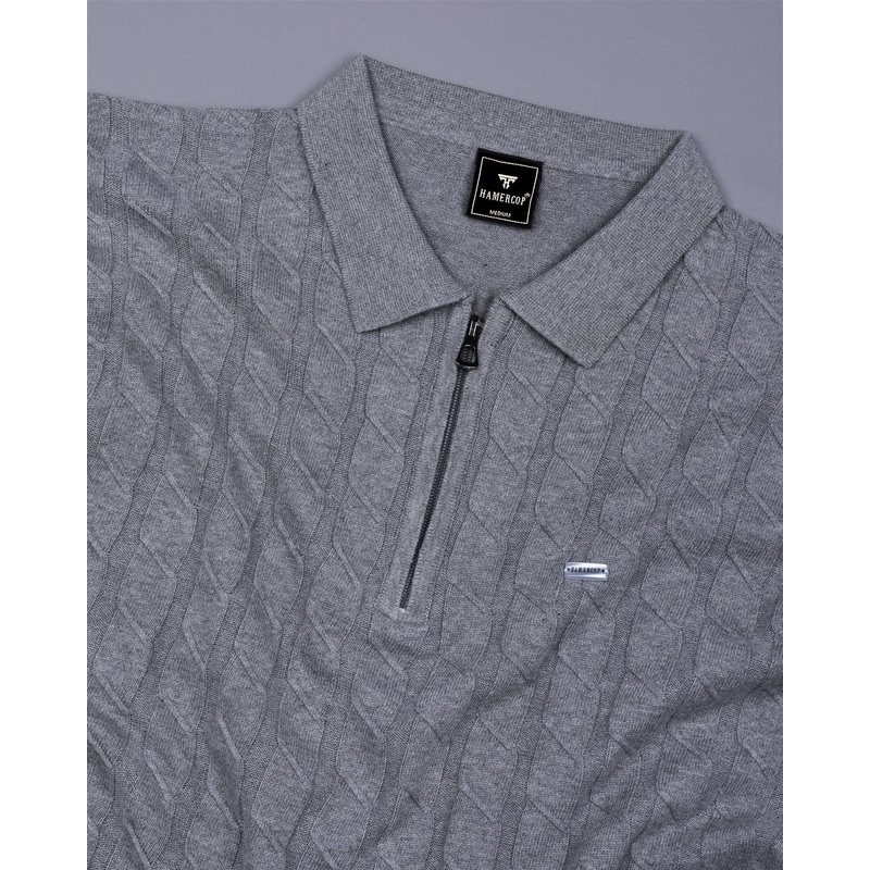 Tbesta Gray Knitted Melange Cotton Zipper Polo T-Shirt