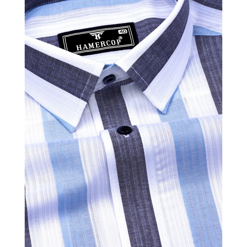 Tarpon Blue With White Broad Stripe Linen Cotton Shirt