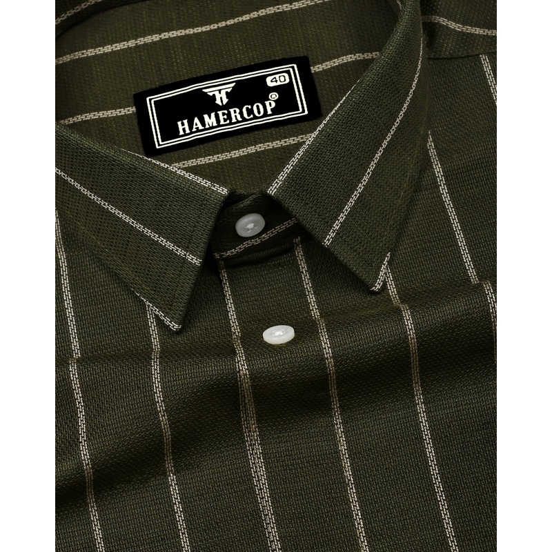 Temper Green With Cream Dobby Stripe Cotton Shirt