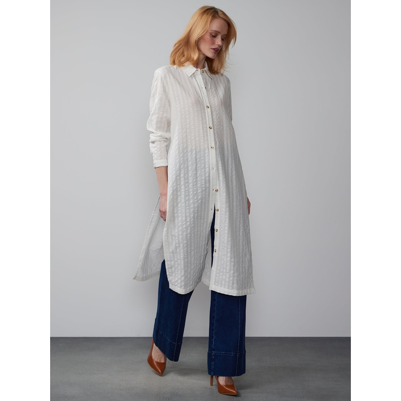 Textured Stripe Side Slit Maxi Shirt GREEN – OLIVE VINE