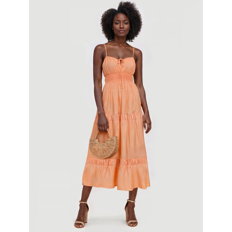 Tiered Fit Flare Midi Sun Dress ORANGE – ORANGE
