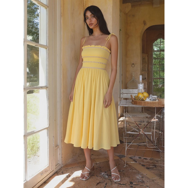 Tie Shoulder Smocked Fit & Flare Midi Dress BLUE – BLUE