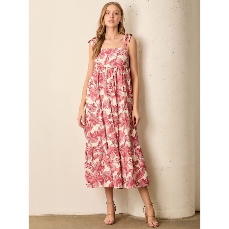 Tie Strap Floral Maxi Sun Dress PINK – PINK
