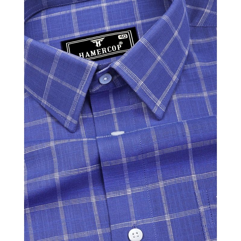 Tipton Blue With Cream Check Linen Cotton Shirt