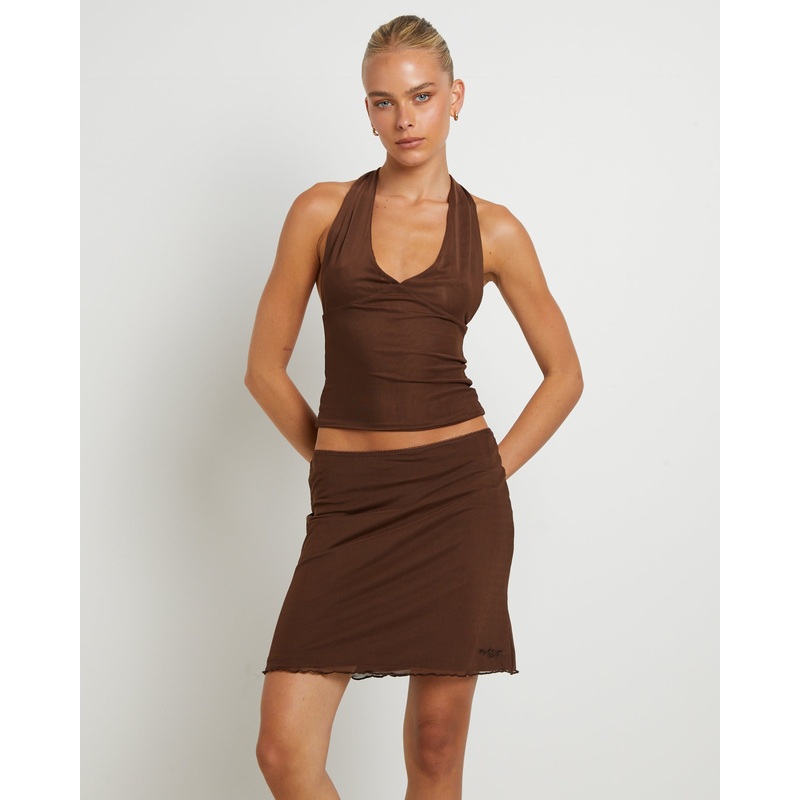Tilly Maserati Halter Neck Top in Chocolate BRN