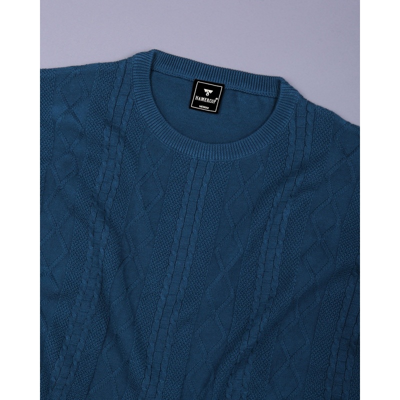 Triton Peacock Blue Knitted Cotton T-Shirt