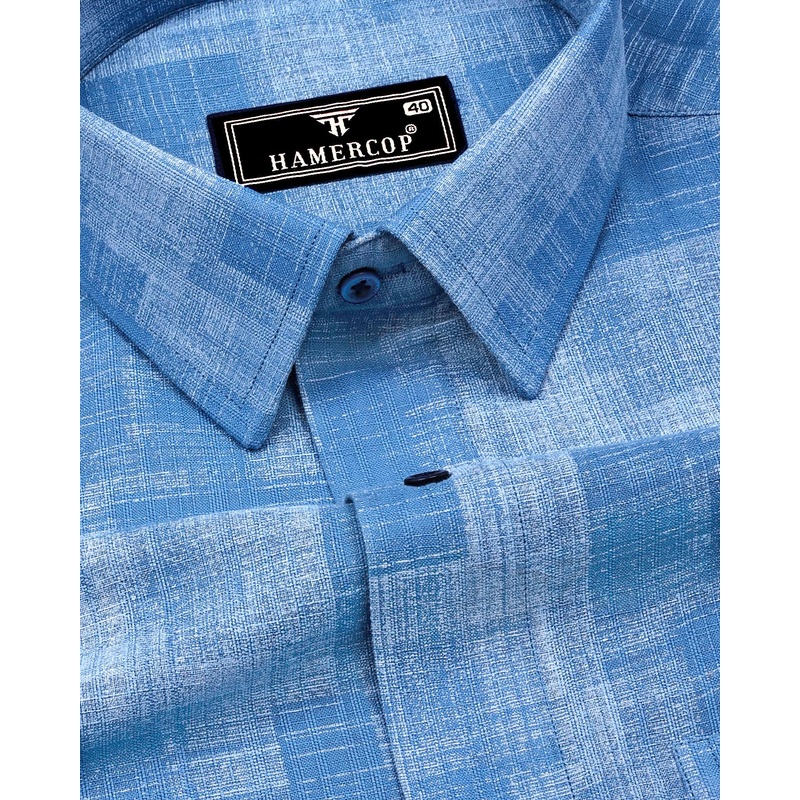 Troyes Blue With White Printed Linen Cotton Shirt