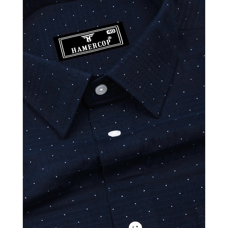Trojes Navyblue With White Dot Printed Seersucker Cotton Shirt
