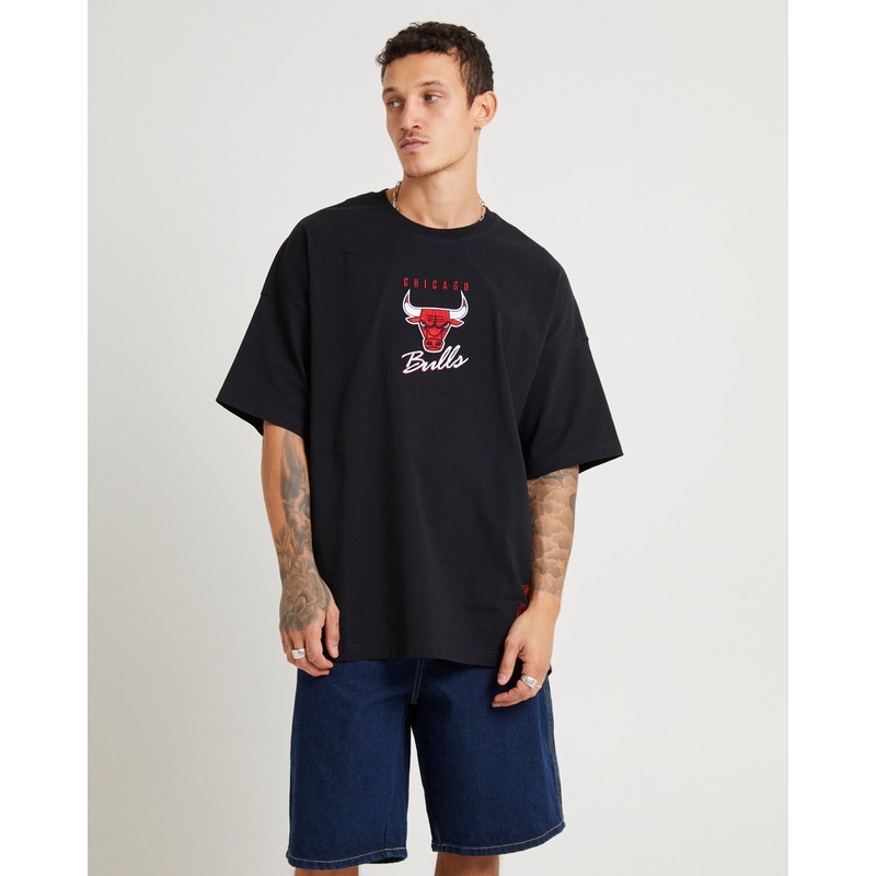 Tri Logo Bulls Oversized T-Shirt in Faded Black BLK