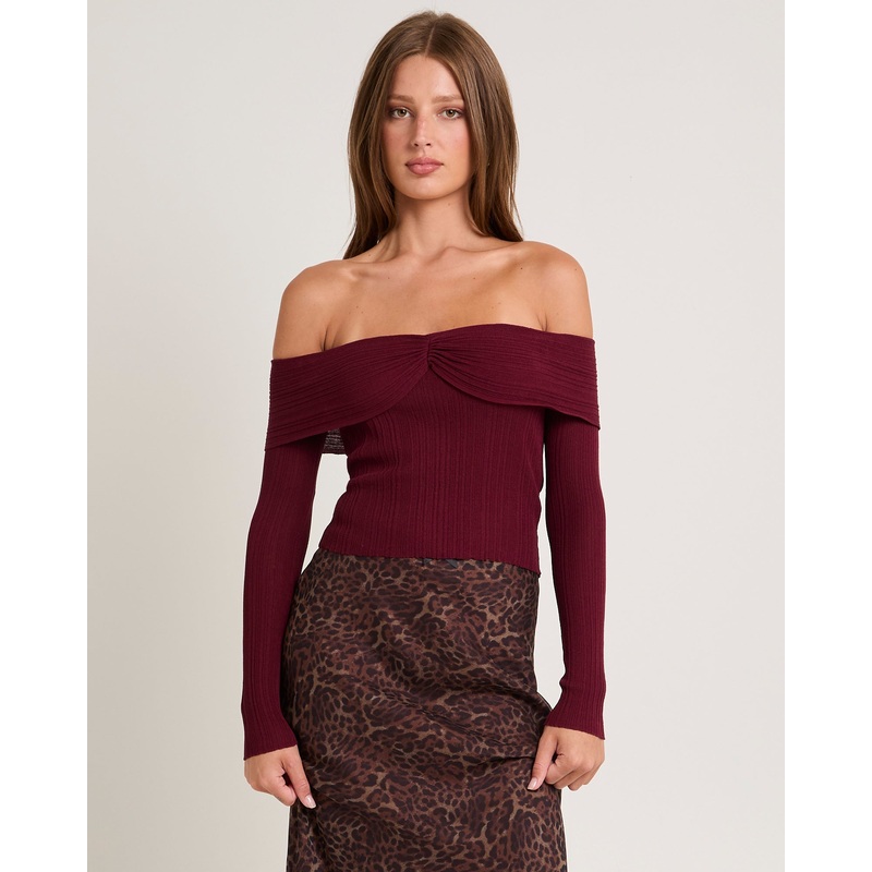 Tully Off Shoulder Knit Top RED