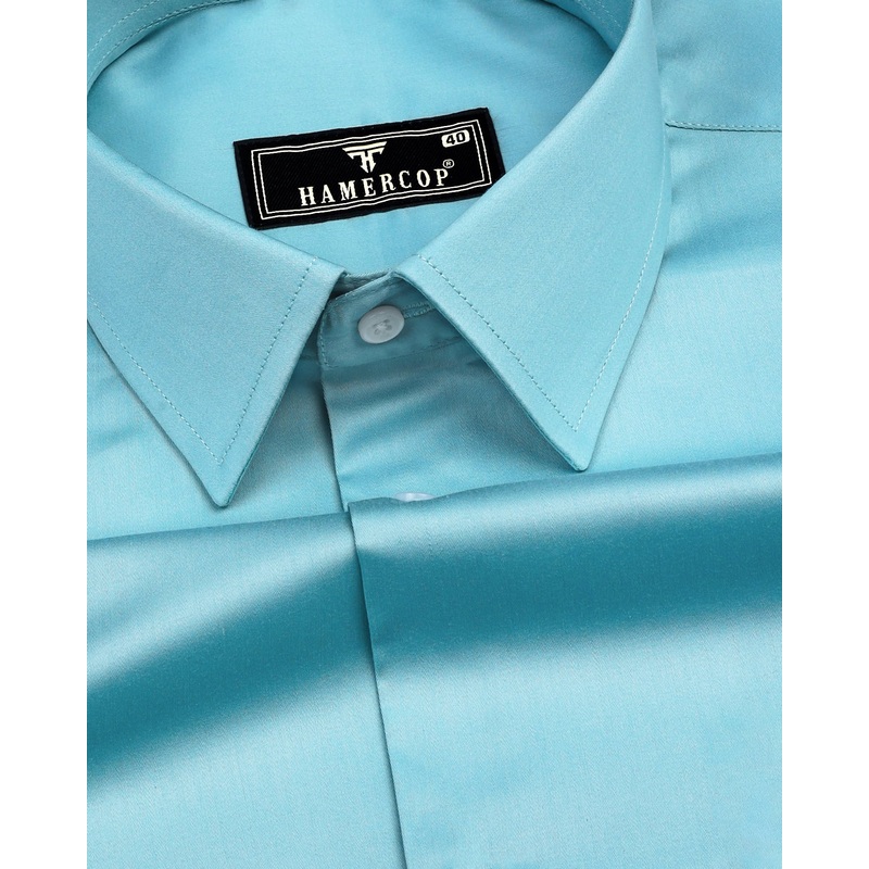 Beach Aqua Blue Soft Touch Satin Premium Cotton Shirt