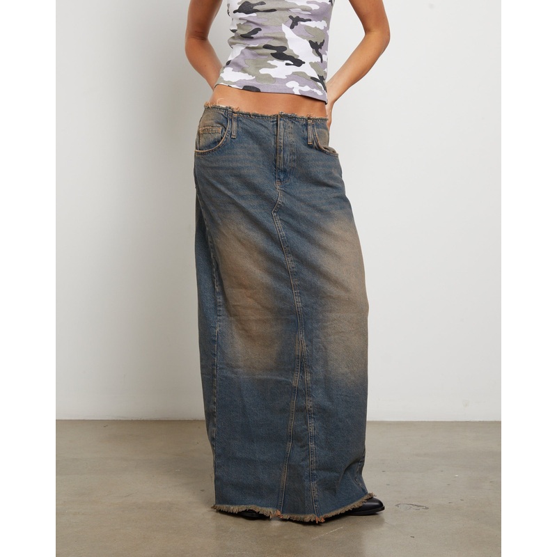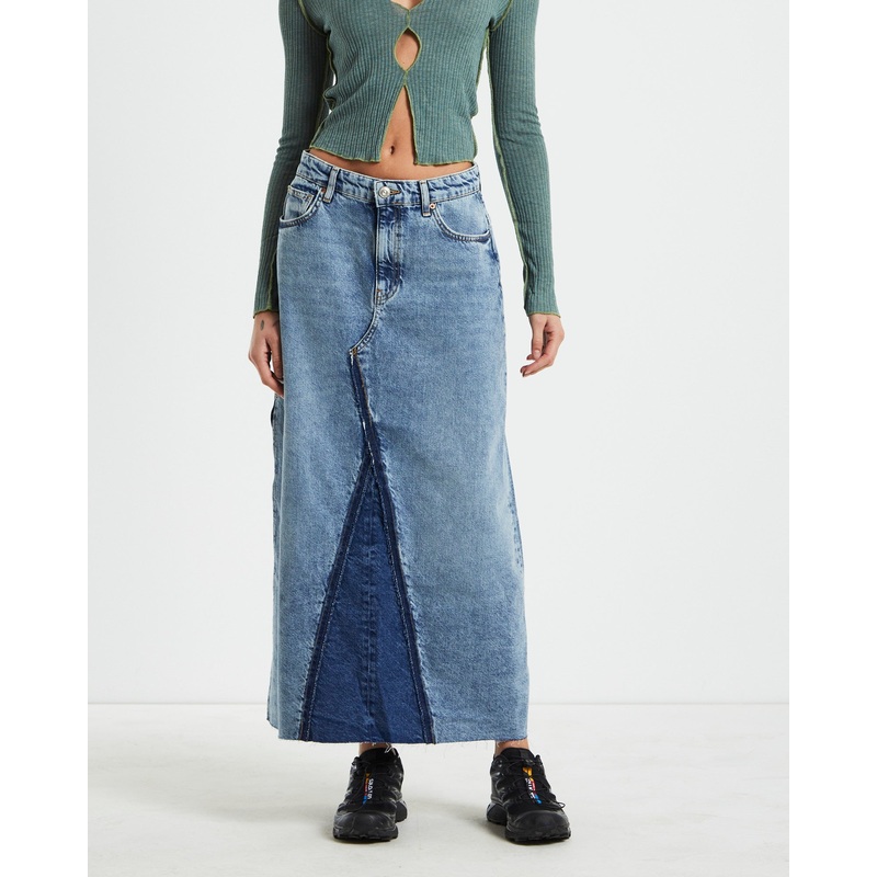 BDG Frankie Midi Skirt in Overdye Pink Denim DNM